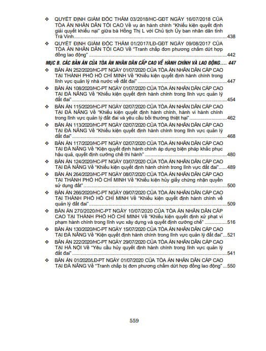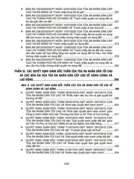 Phần III. Các Quyết định giám đốc thẩm của Tòa án nhân dân tối cao và các Bản án của Tòa án nhân dân cấp cao về hành chính và lao động