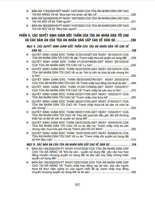 Tuyển chọn Quyết định giám đốc thẩm và Bản án của Tòa án nhân dân tối cao và Tòa án nhân dân cấp cao về hình sự, dân sự, hành chính, lao động từ năm 2015 – 2020